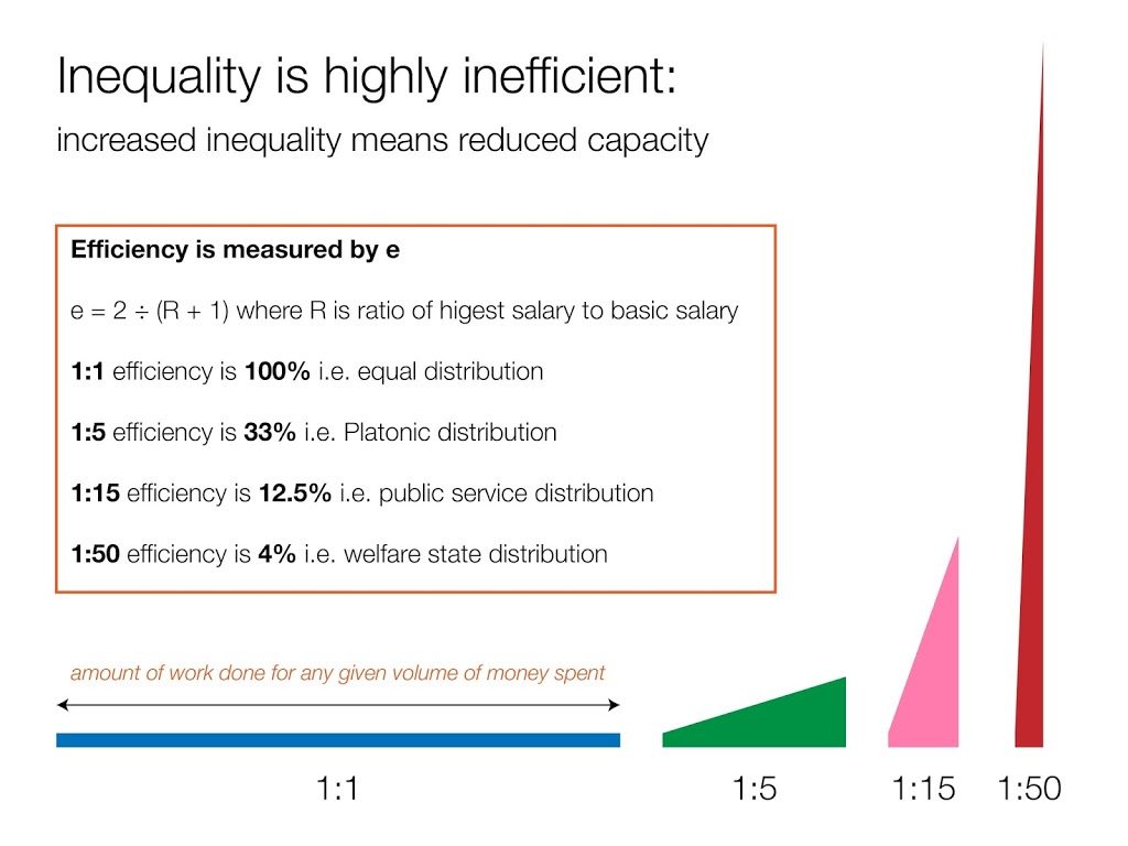 This may seem obvious, but it’s perhaps worth underlining the point. Currently the false belief is that inequality is economically necessary - here I want to propose that inequality is inherently inefficient - in economic terms.