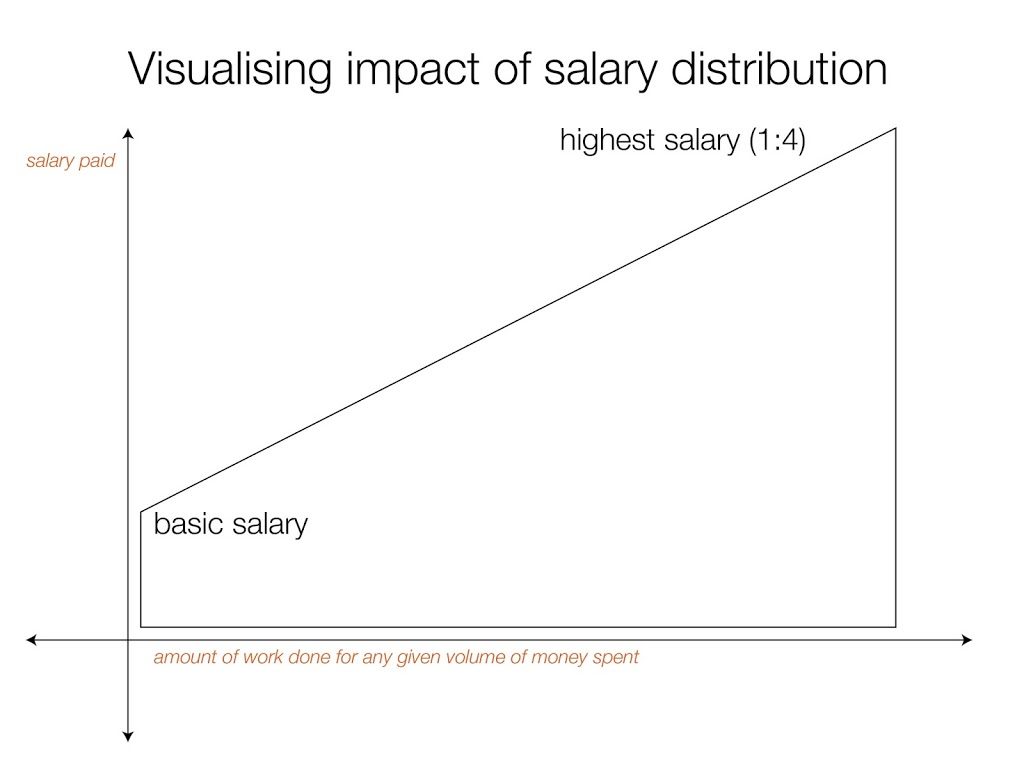 At its simplest my argument is as follows. If I have a limited amount of money and I want to get the maximum amount of work done then paying people equally will maximise the amount of work that gets done. However, if I choose to pay some people much more than others then I will have to reduce the total amount of work I pay for.